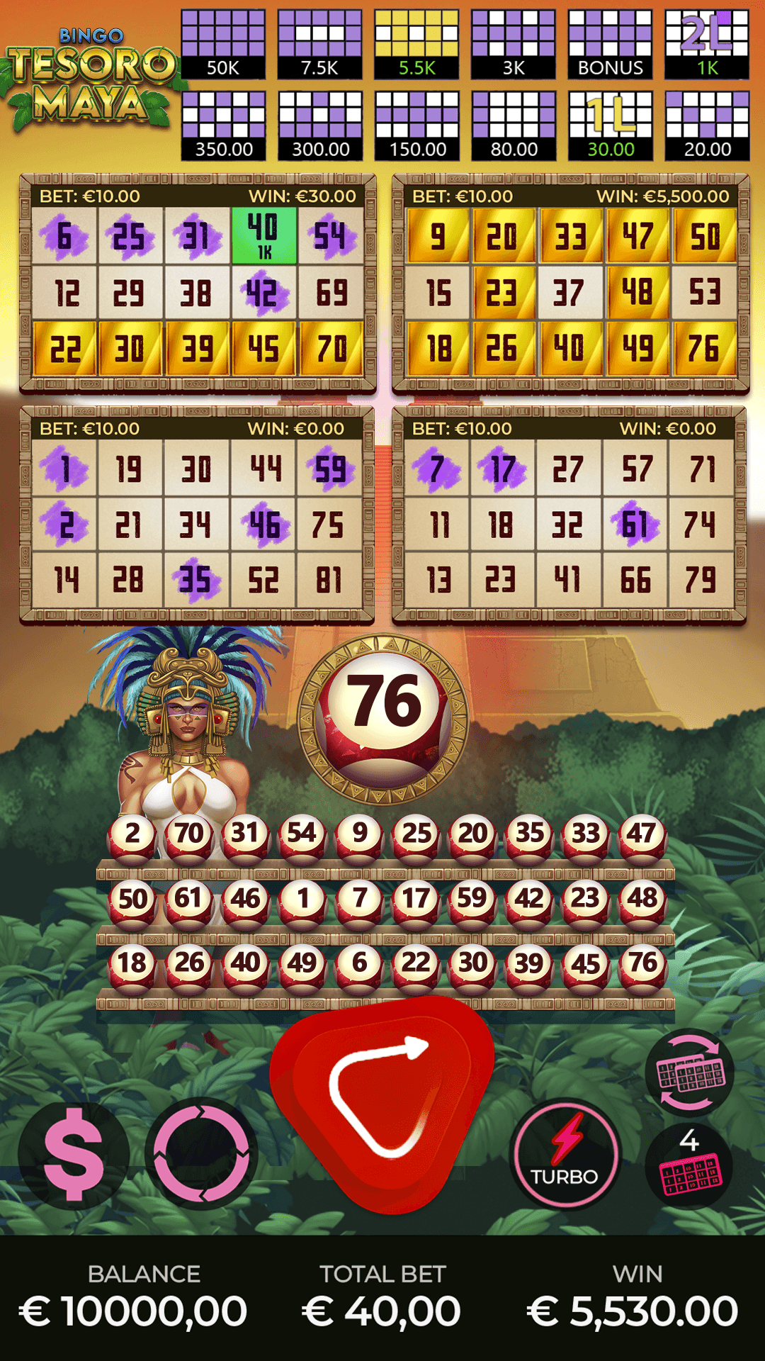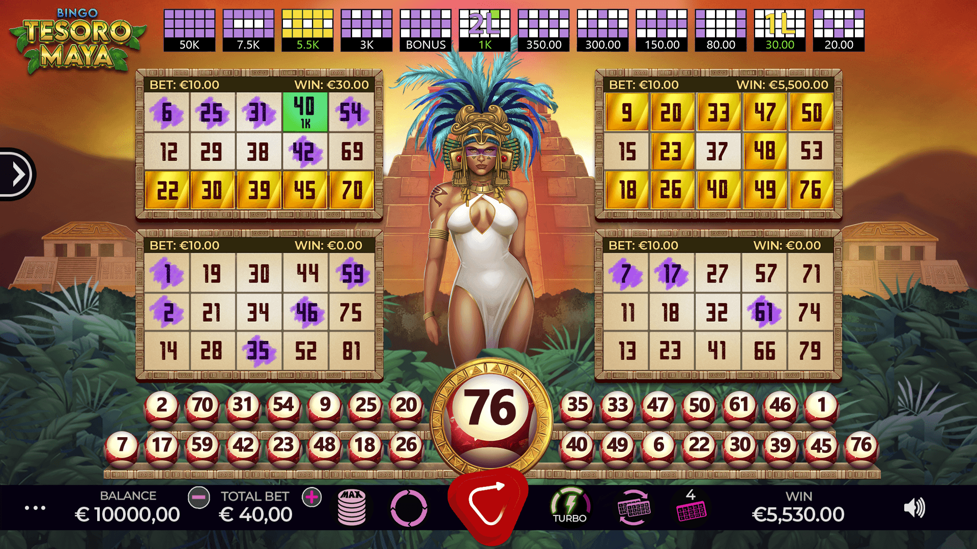 Uncover the secrets of the ancient Mayan civilization with 'Tesoro Maya'! Join the valiant warrior and fierce queen on an exciting journey filled with mystery and rewards. Utilize Special Balls and Extra Balls to enhance your chances, and conquer