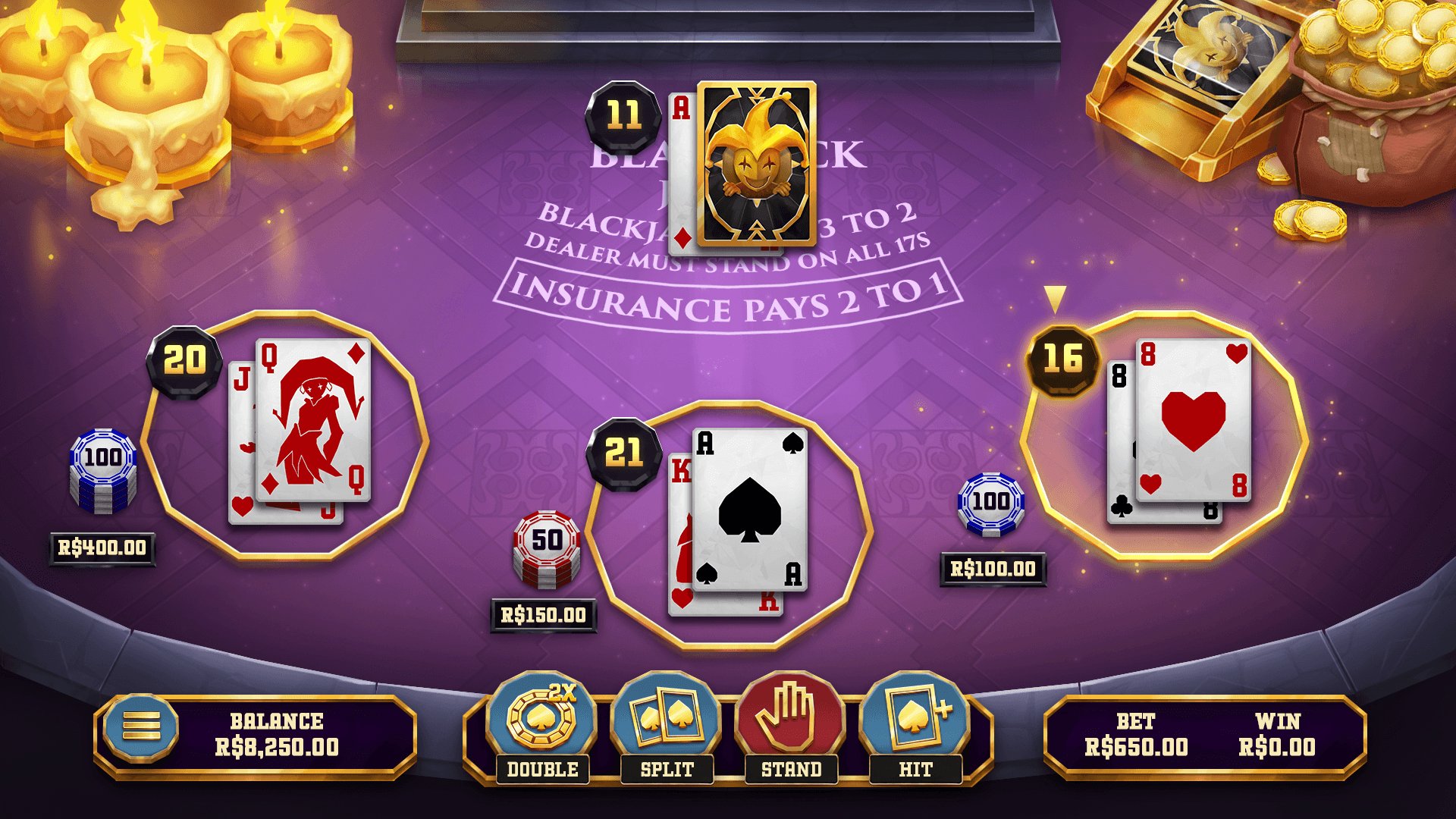 Blackjack Joker steps into the spotlight with a bold personality that challenges the ordinary and delivers a sharper gaming experience. The game blends striking design, golden intensity, and dynamic animations to create an atmosphere charged with anticipation. Built on traditional blackjack foundations, it is played with eight decks, offers a 3:2 payout for blackjack, and pays 2:1 on insurance. With flexible betting limits and multi-hand gameplay, Blackjack Joker drives deeper engagement and longer sessions.