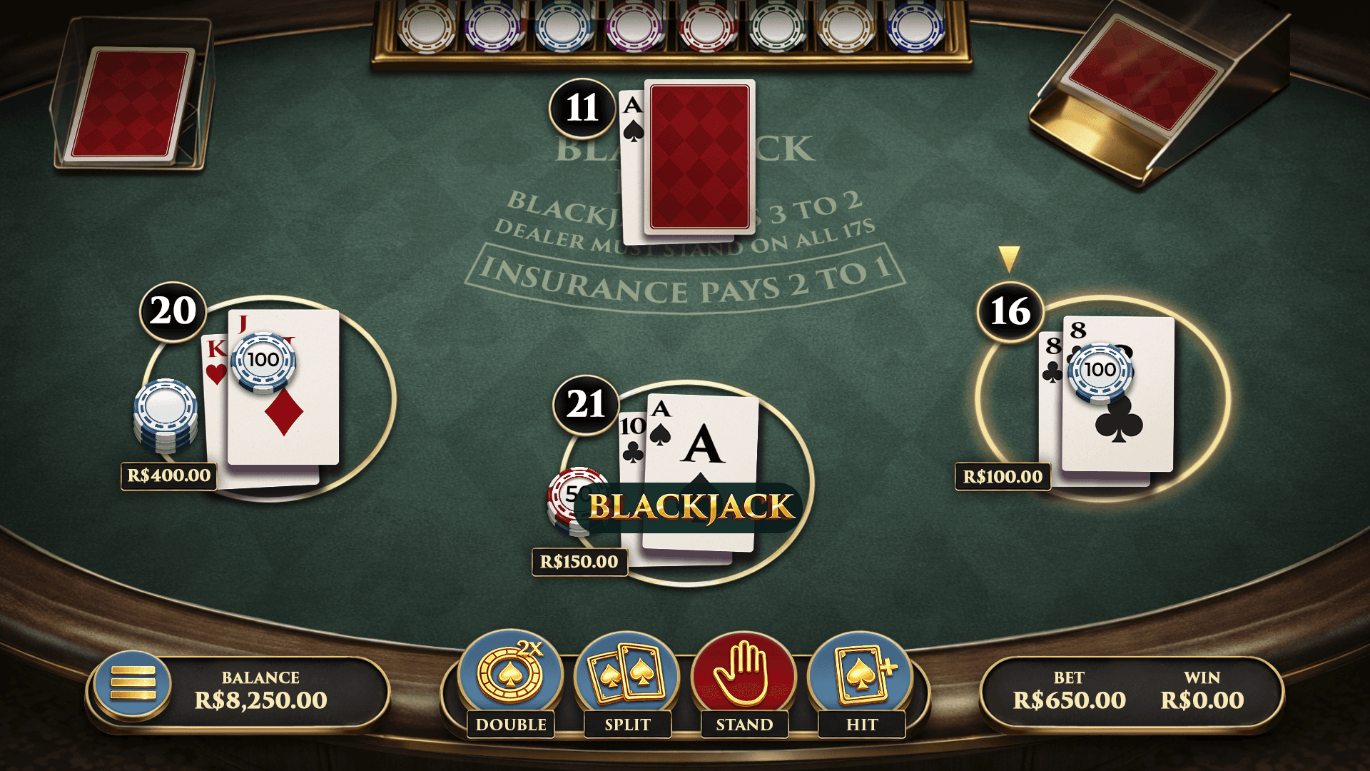 Blackjack Prime elevates the timeless card classic into a premium casino experience, combining sophisticated visuals with smooth, intuitive gameplay. Built on trusted blackjack rules, the game features 8 decks, 3:2 payout for Blackjack, and insurance paying 2:1, delivering a balanced and competitive table that appeals to both casual players and high-value audiences. With flexible betting options and multi-hand play, Blackjack Prime maximizes engagement and session time. Take your spot at the table and experience Blackjack at its finest.