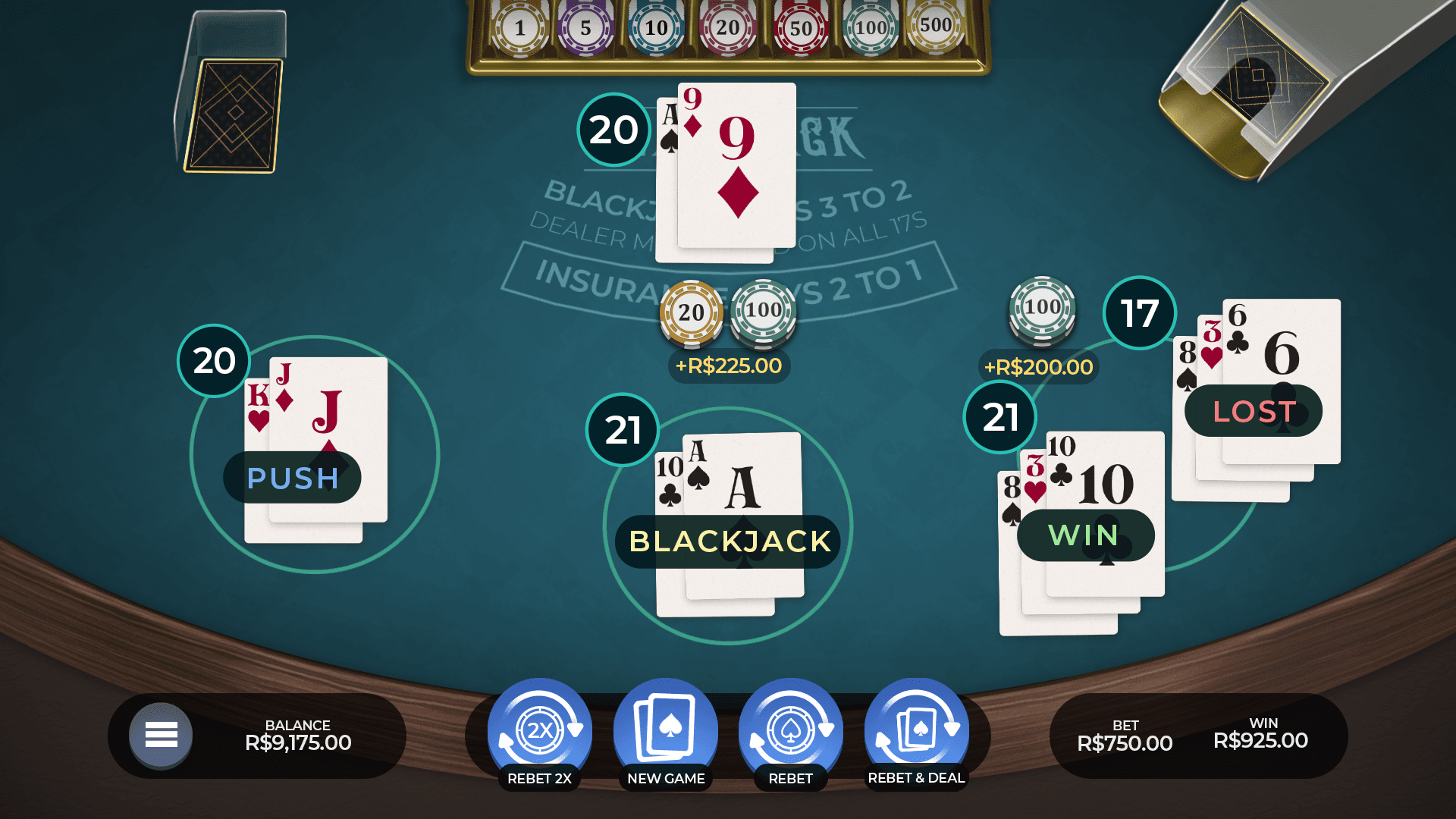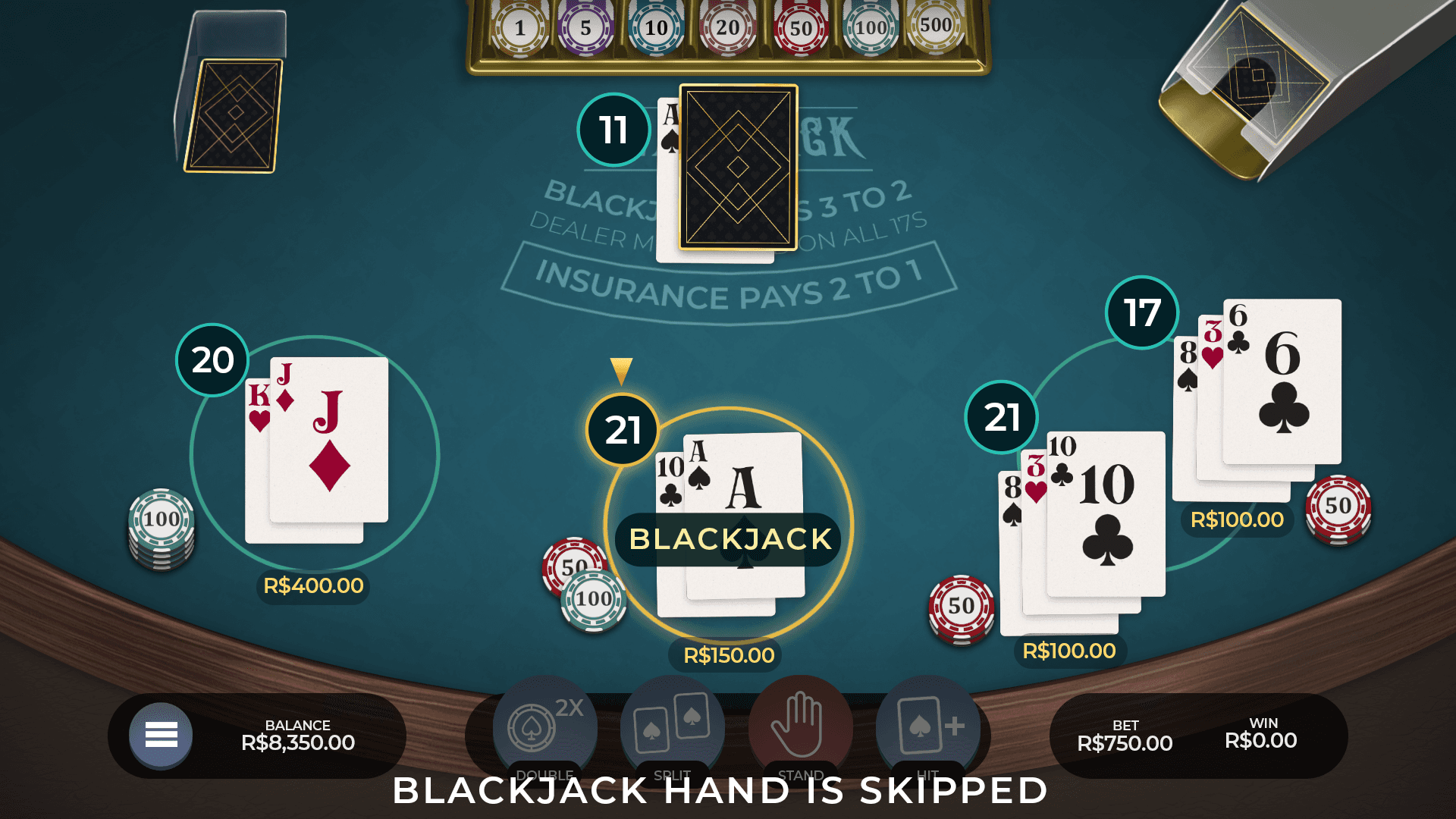 Blackjack captures the essence of the classic card game, where the player’s objective is to skillfully match the dealer's cards to achieve the coveted value of 21. What sets our game apart is the versatility in betting options and the ability to play multiple hands simultaneously, catering to both novice players and seasoned enthusiasts.