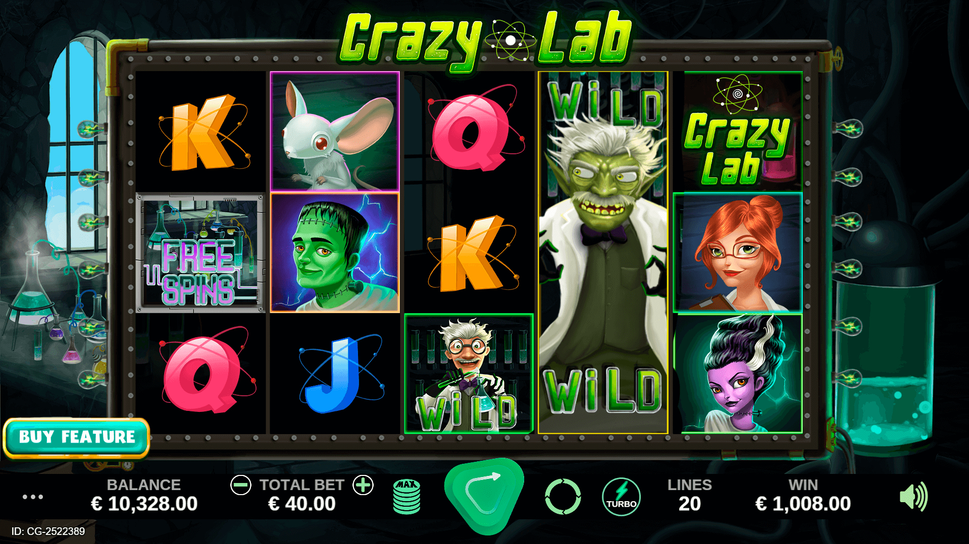 Crazy experiments, a secret underground Chemist Lab, and a wacky Scientist and some very odd friends, that's what you will discover when you play Crazy Lab. This is a superb Slot which is a 5-reel, 20-payline game with wilds, scatters, Free Spins and multiple bonus games all loaded with big payouts.