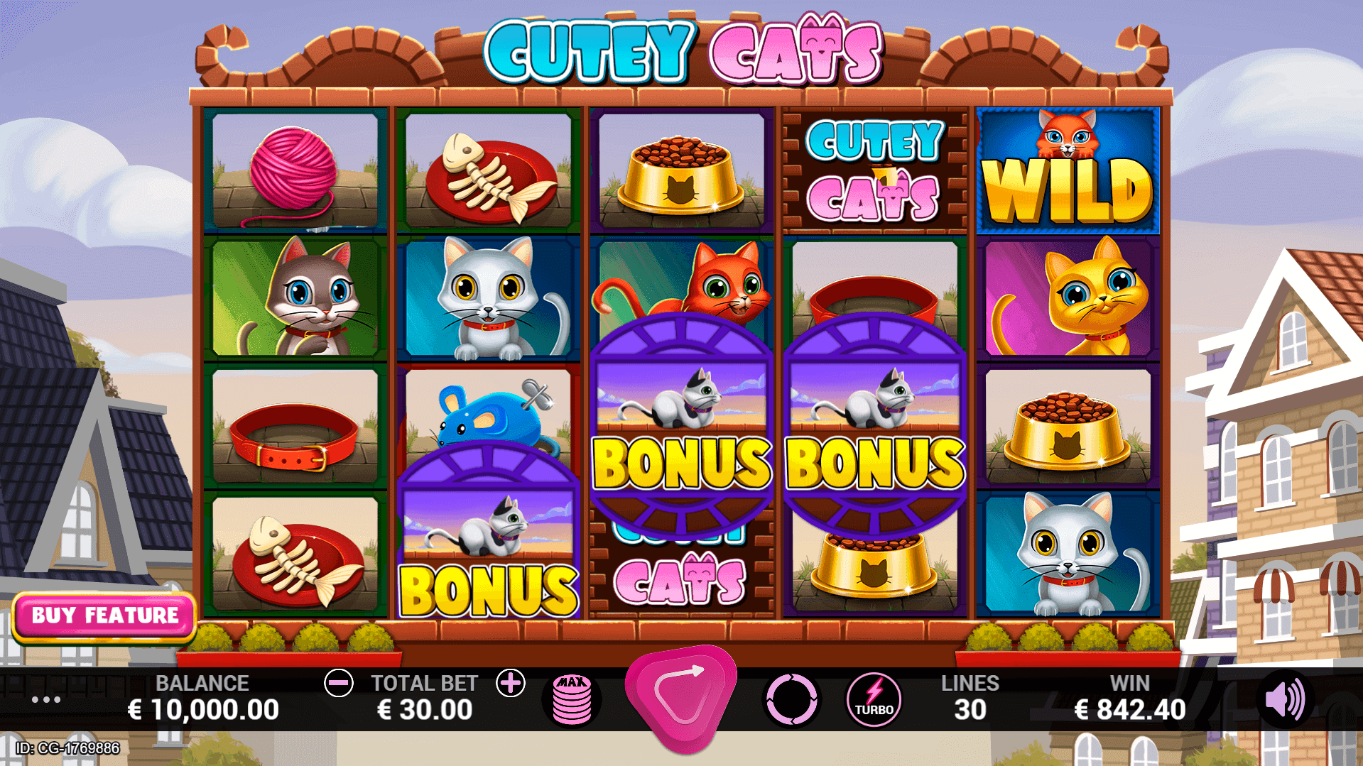 Does it get any cuter? I guess that's why this is called Cutey Cats! A purrrrfect game to play if you are looking for a chilled out time. Join the cat residents Josh, Hanna, Bob and Luke and see if they can take you on a journey littered with Cash. This game has a whopping 4 bonus games so let these Cutey Cats bring you some riches!