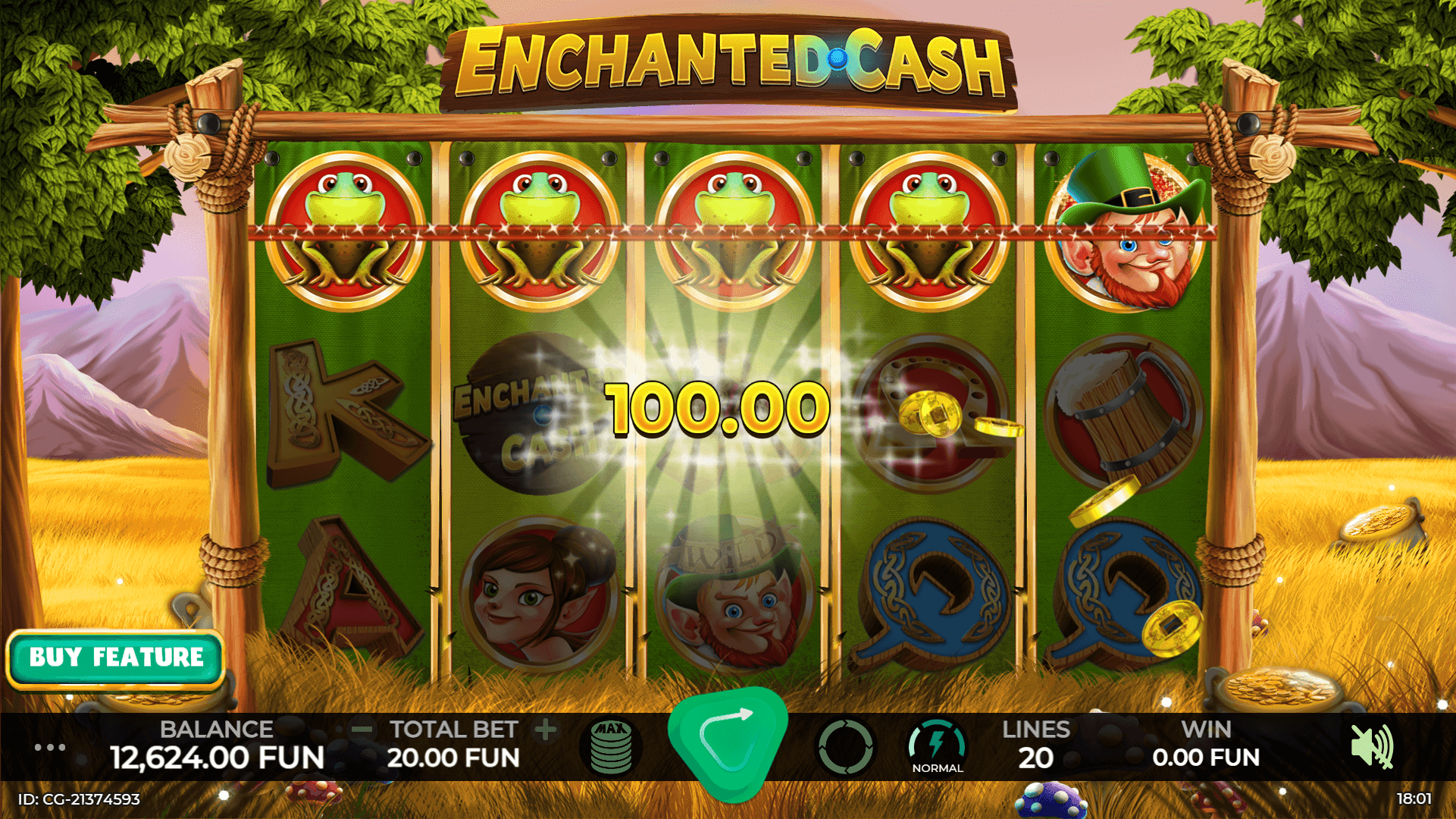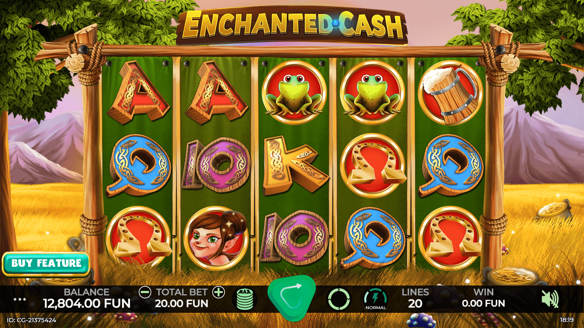 Happy Frogs, cute Fairies, pots of Gold and a crazy Leprechaun giving away oodles of Cash, what more could you ask for? Enchanted Cash is one of those Slots that takes you away to a place full of fun and laughter. Pots of Gold bonus is played right in front of our happy old man tree. We hope he makes you pick the right Pot. Back in the game Larry the Leprechaun is ready to jump out and have a dance during the Free Spin round and give you more of the Enchanted Cash.