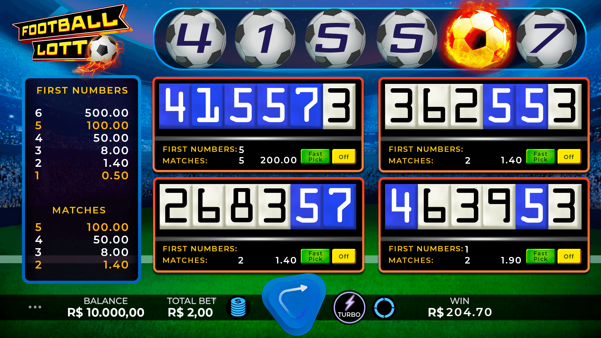 Score! Join a football match in our new lottery game and prove you have what it takes to be the world's champion! Hit all the numbers, kick the flaming balls and celebrate your huge winnings!