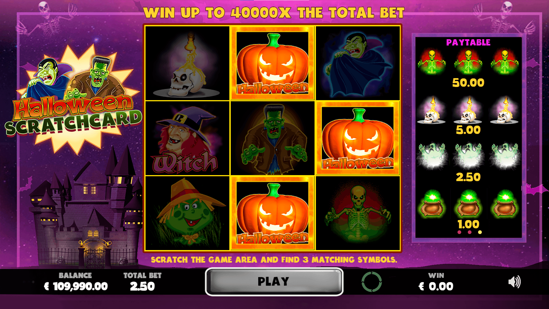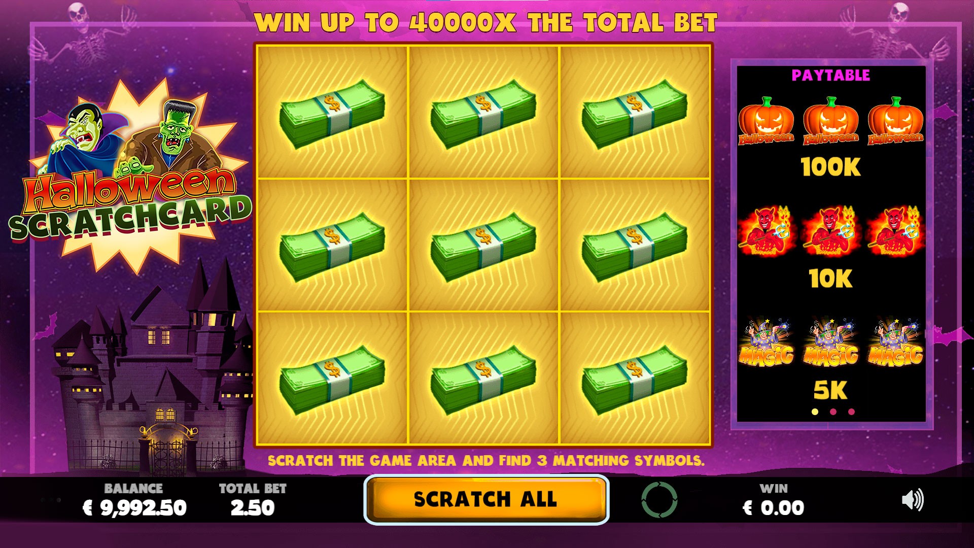 Scratchcard Halloween, the new match-three scratchcard game from Caleta is the first one of a new family of games inspired by the most famous slot in latin america! With payouts of up to forty thousand times the stake and the possibility to really scrape off your big payouts. Have you turned on the light yet? So come enjoy your prizes with classic vampires, ghosts and witches!