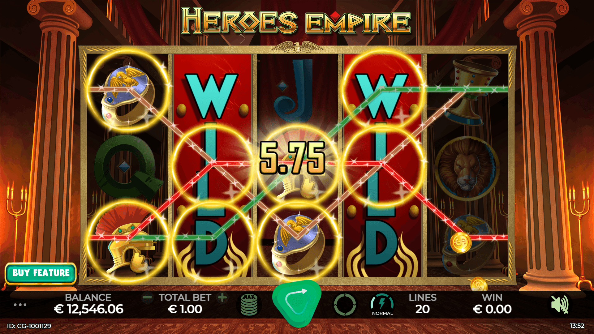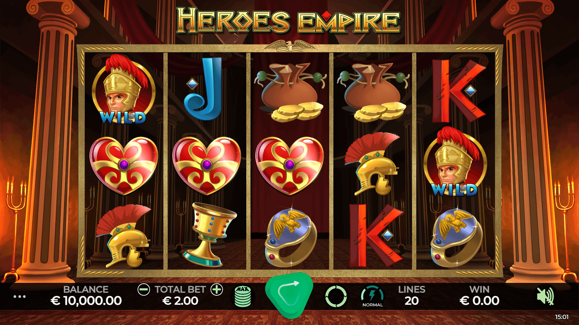 Heroes Empire transports you to the golden age of the ancient Roman Empire when war campaigns were being won, riches were flowing, and stunning architecture was everywhere to be seen. This slot is loaded with features that will keep even the Emperor happy. Hitting 3 Colosseum's takes you to the Free Spin round where the mood changes and the Emperor is ready to stand strong with his Sword. If you are lucky to get 3 Shield Bonus symbols on the base game you are in for a treat. This bonus game is loaded with Roman Treasures and if you collect 3 of the Emperors Golden Coins you double your winnings.
