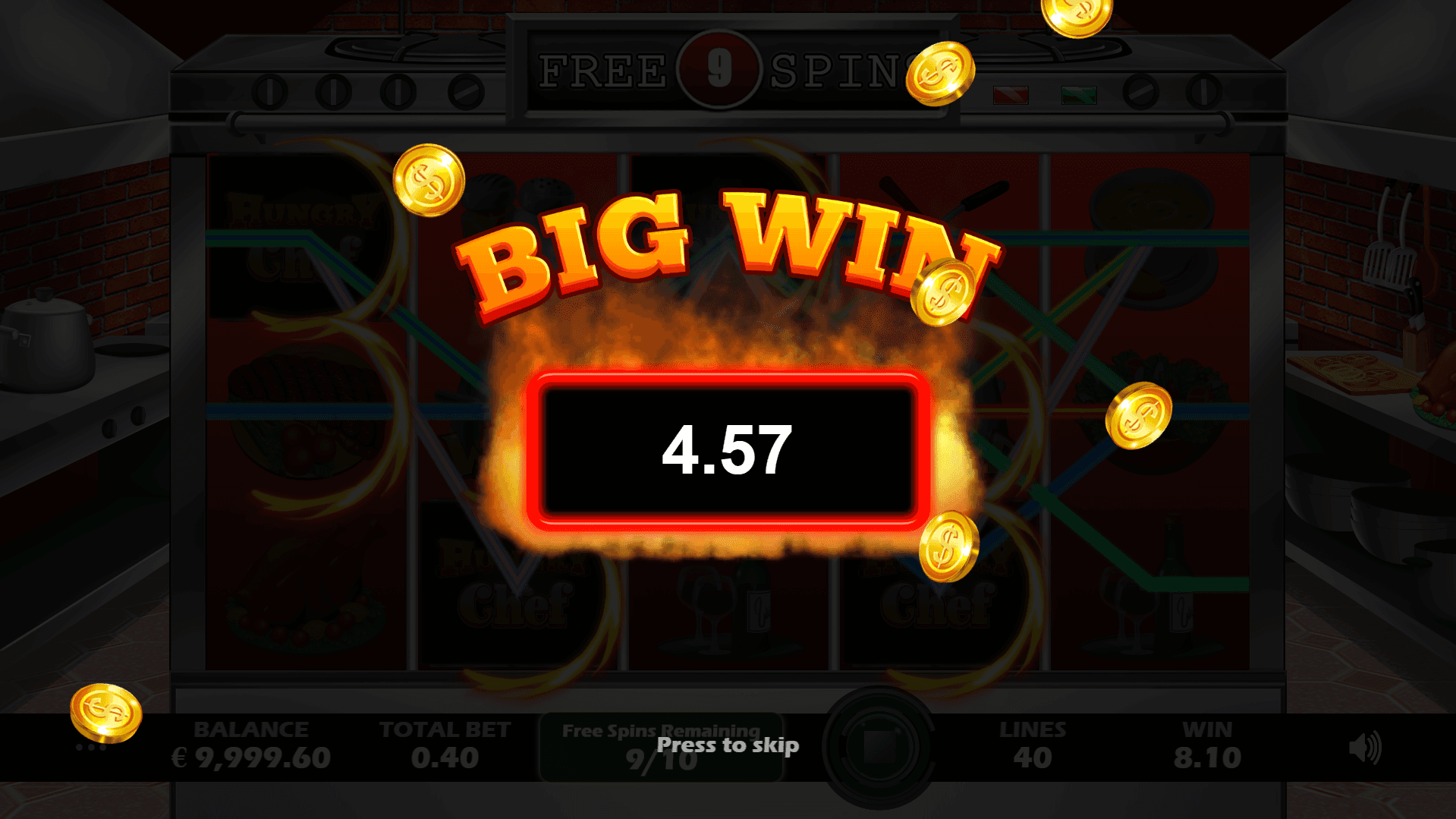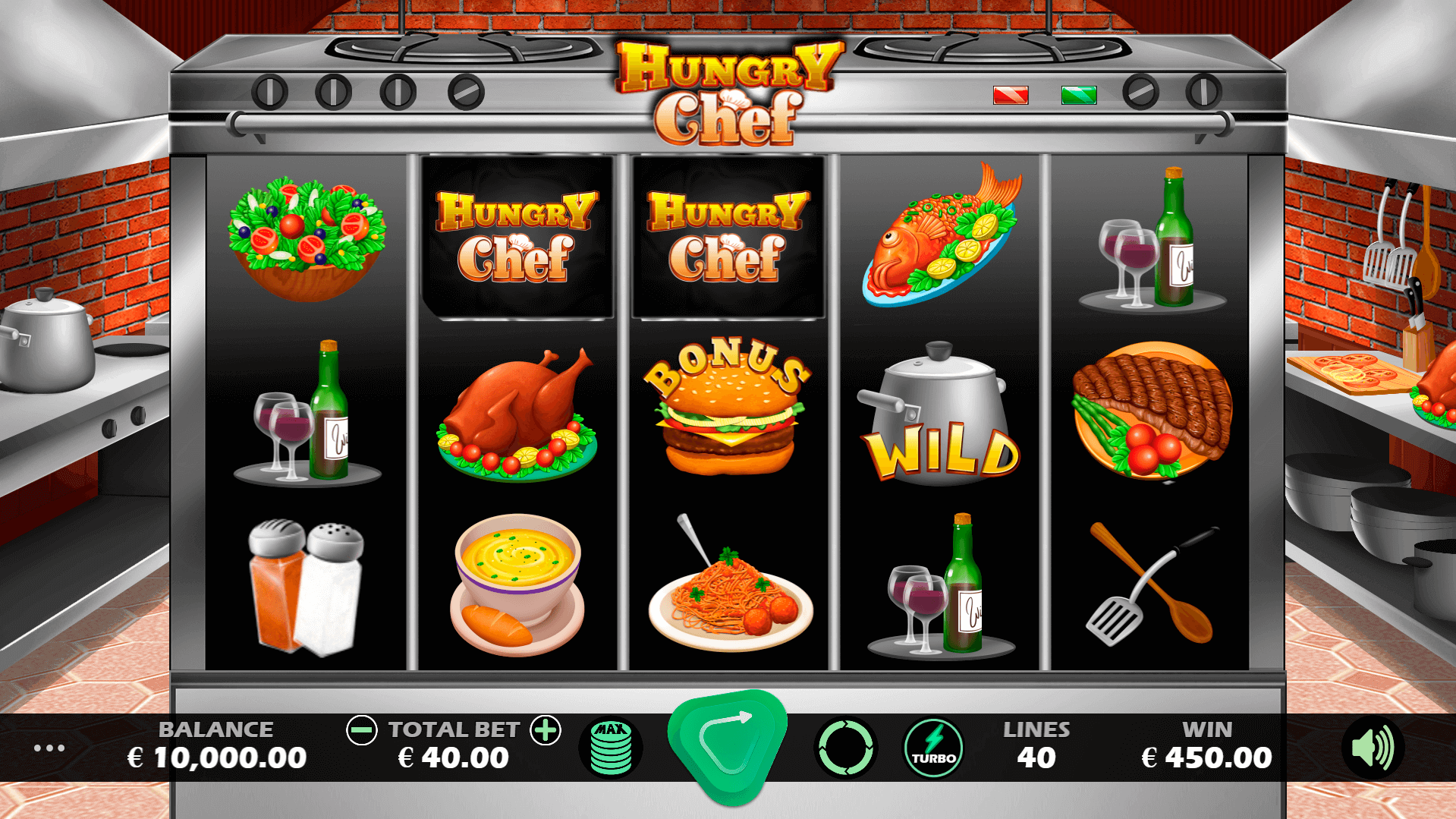 Join our Hungry Chef as he serves up a whole range of food as well as being the key to take you into the Free Spins.