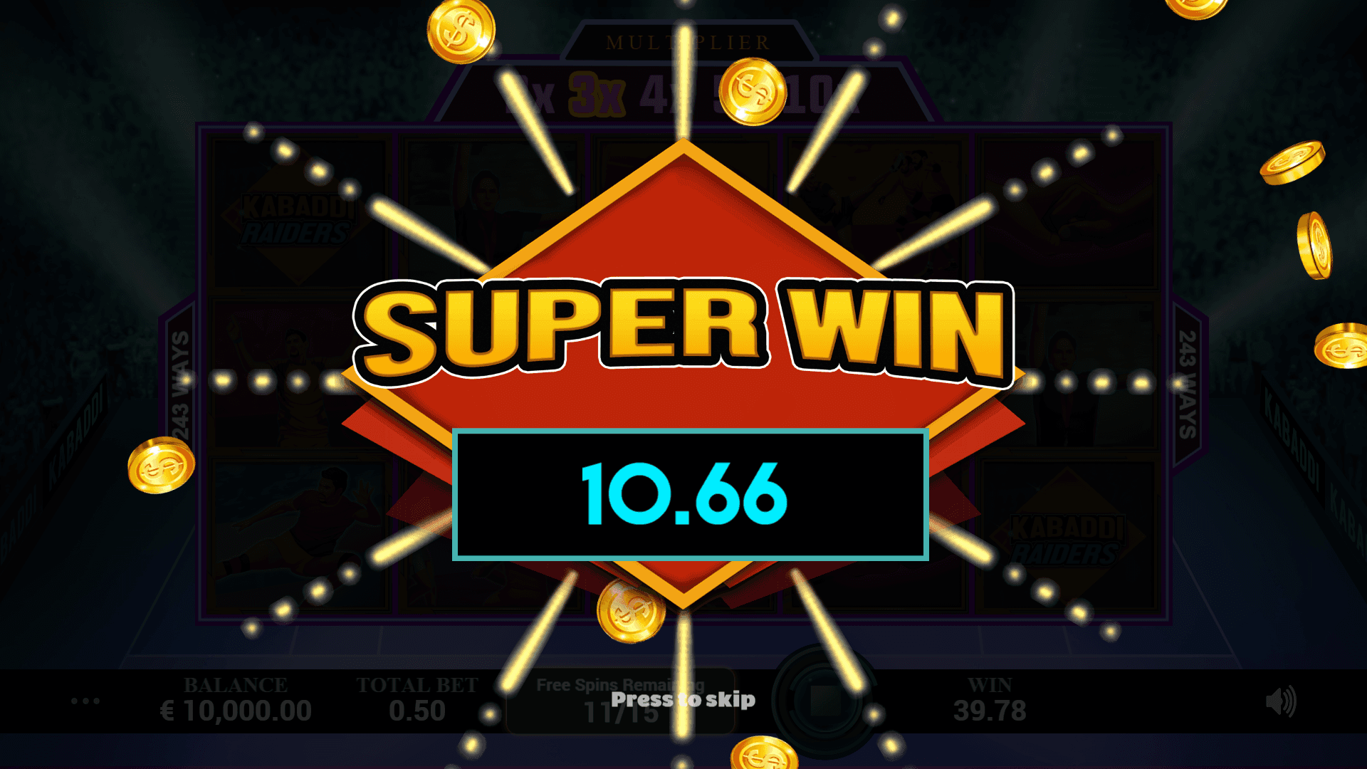 Kabaddi is a team sport originating from India. It is believed to have been invented 4,000 years ago. Indi Slots brings you the only Kabbadi slot available anywhere online. The game is loaded with Free Spins, Progressive Multipliers, 243 ways to win and much more. Time for a Raid? Let's go!