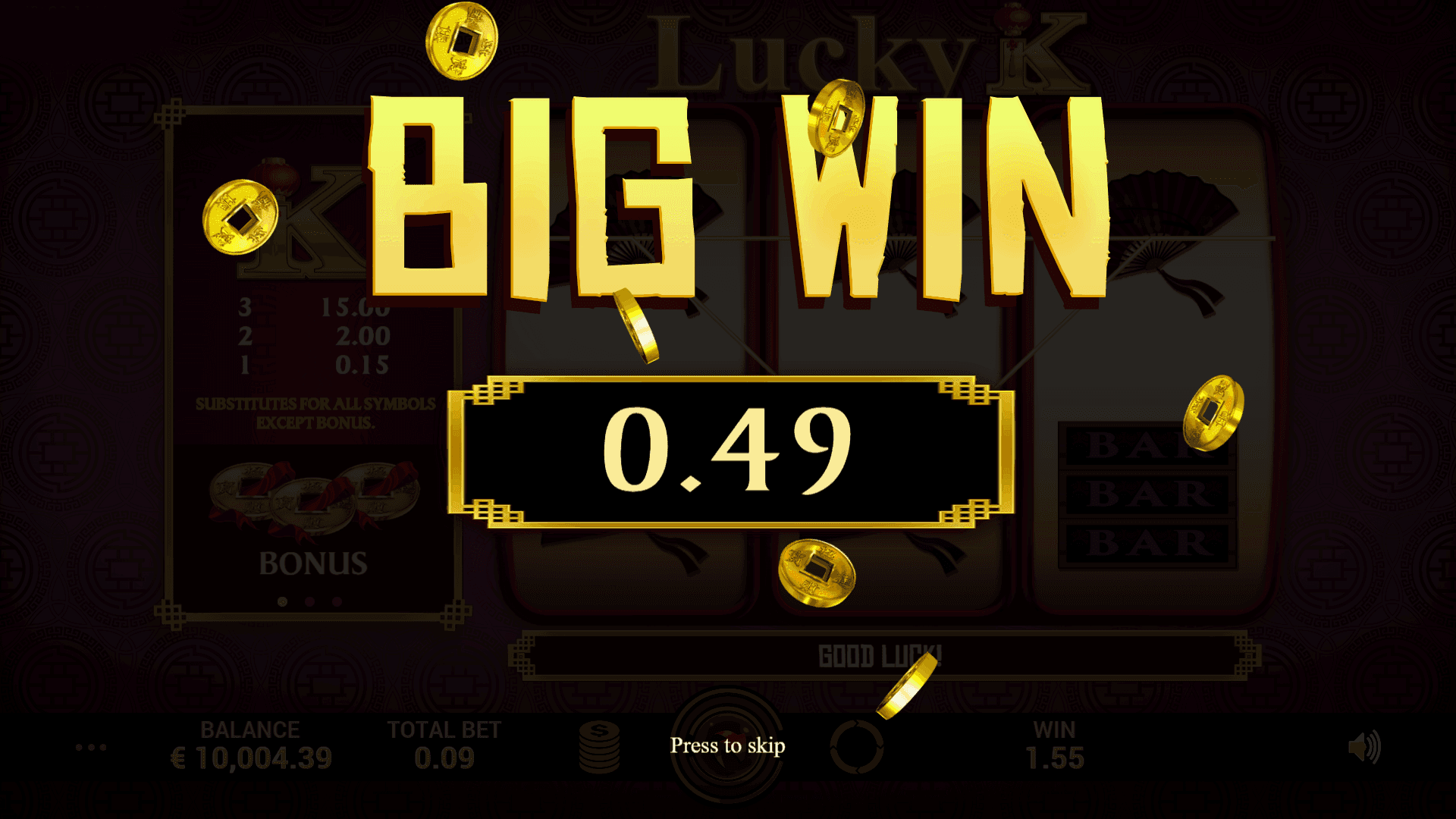 Be amazed by the wonders of the Chinese culture in this 3x3 slot game! At each spin, you will see many fascinating cultural items while you try to obtain some oriental gold! Spin the wheel in the bonus game to add up your wins with your prize.
