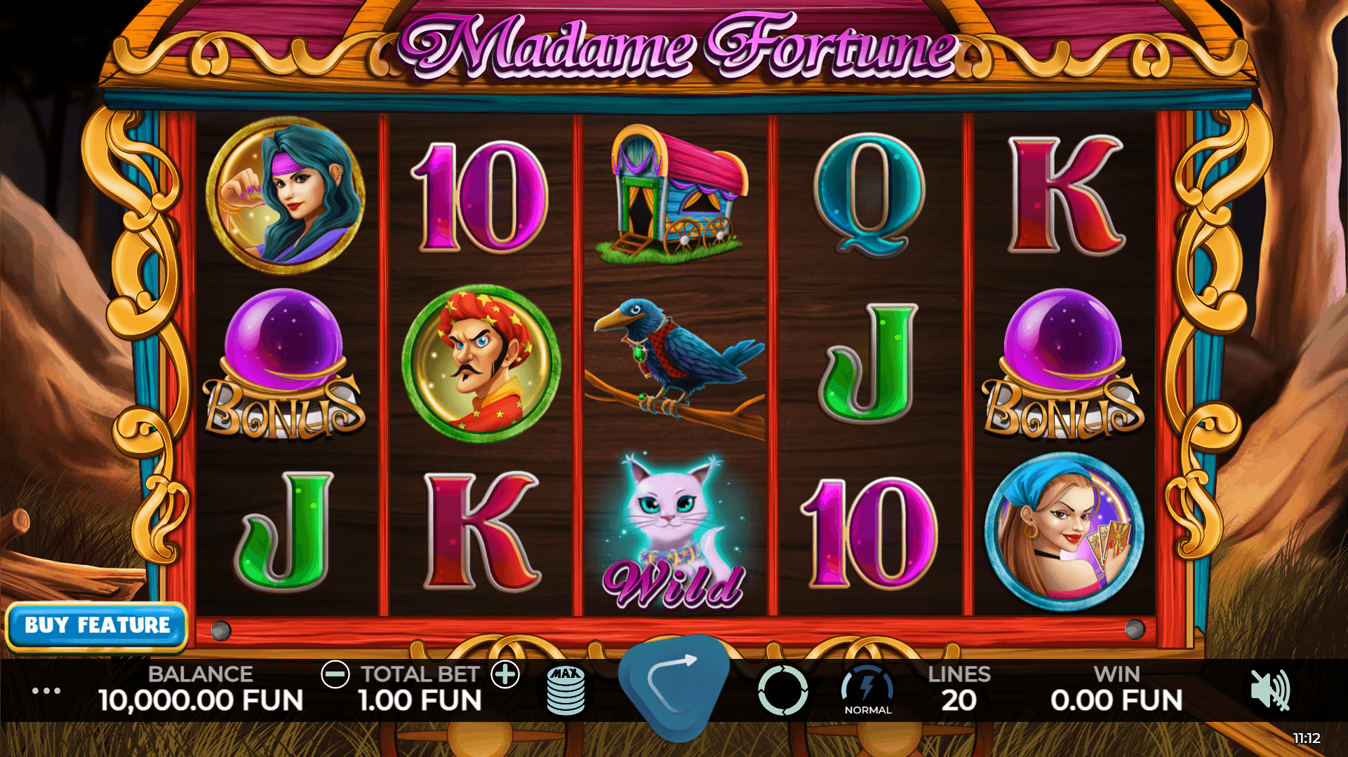 What does your future hold? Of course, it looks prosperous with Madame Fortune the slot game that features 5 reels and a mystical load of game features including Free Spins and a Crystal Ball bonus. Jump on board the Caravan and come on our journey with our Cat, Owl and your hostess, Madame Fortune. The game reels are filled with Gypsy related symbols and with the magical theme and music, what will your Fortune reveal?