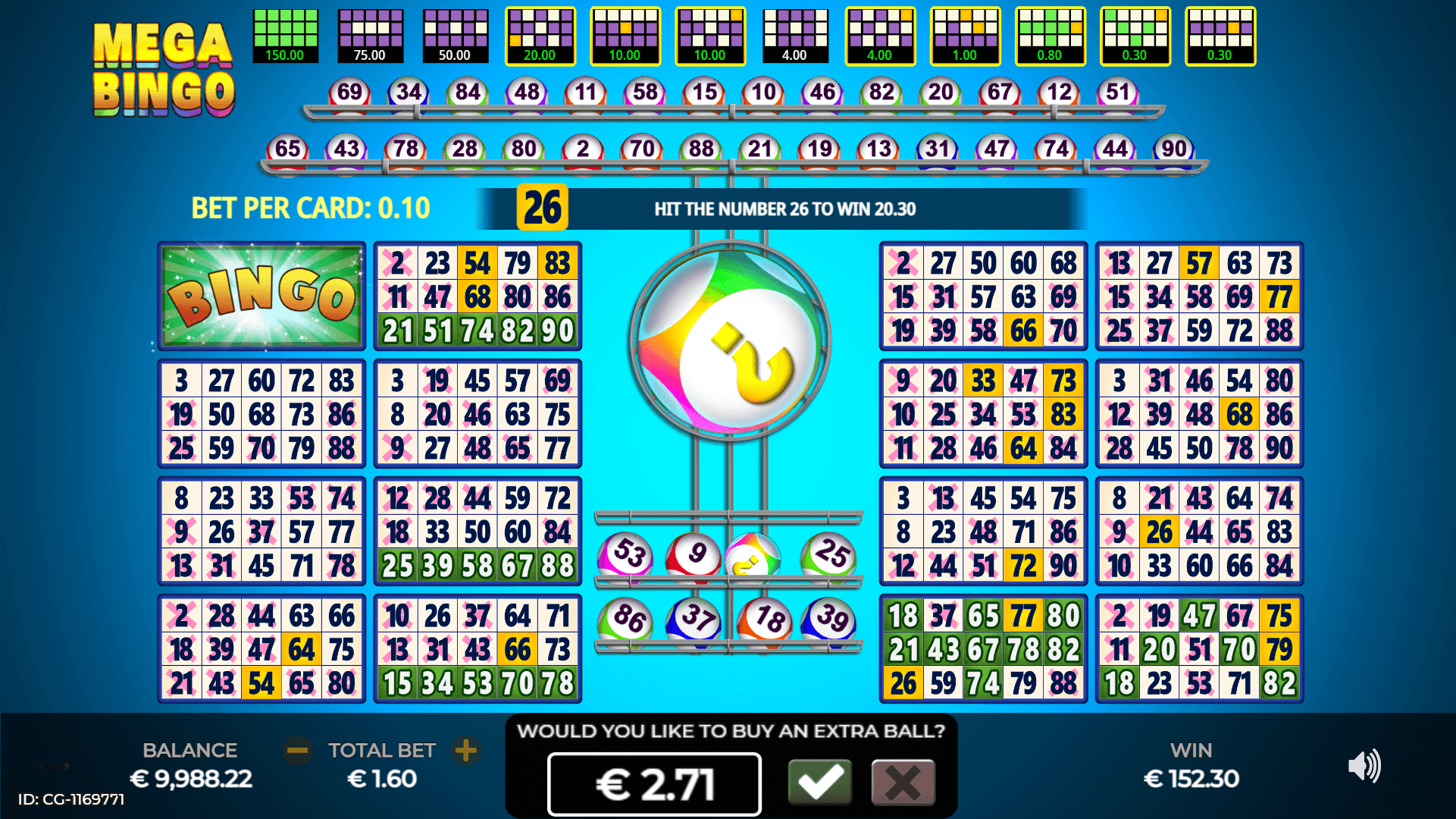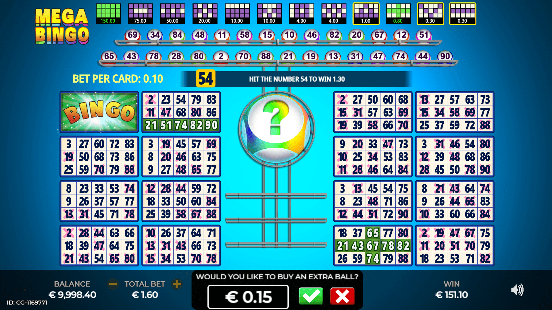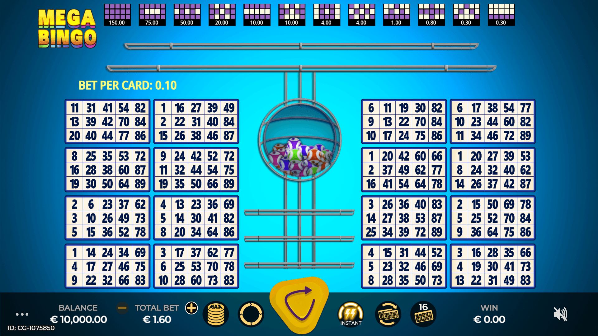 This exciting game allows you to step back into the world of bingo halls and experience all the nostalgia right in your hands. With the ability to play up to 16 cards at once, you'll be able to keep track of all the drawn numbers and increase your chances of winning big with the opportunity to win up to 1,500 times your card bet amount. In Mega Bingo, fortune is on your side!