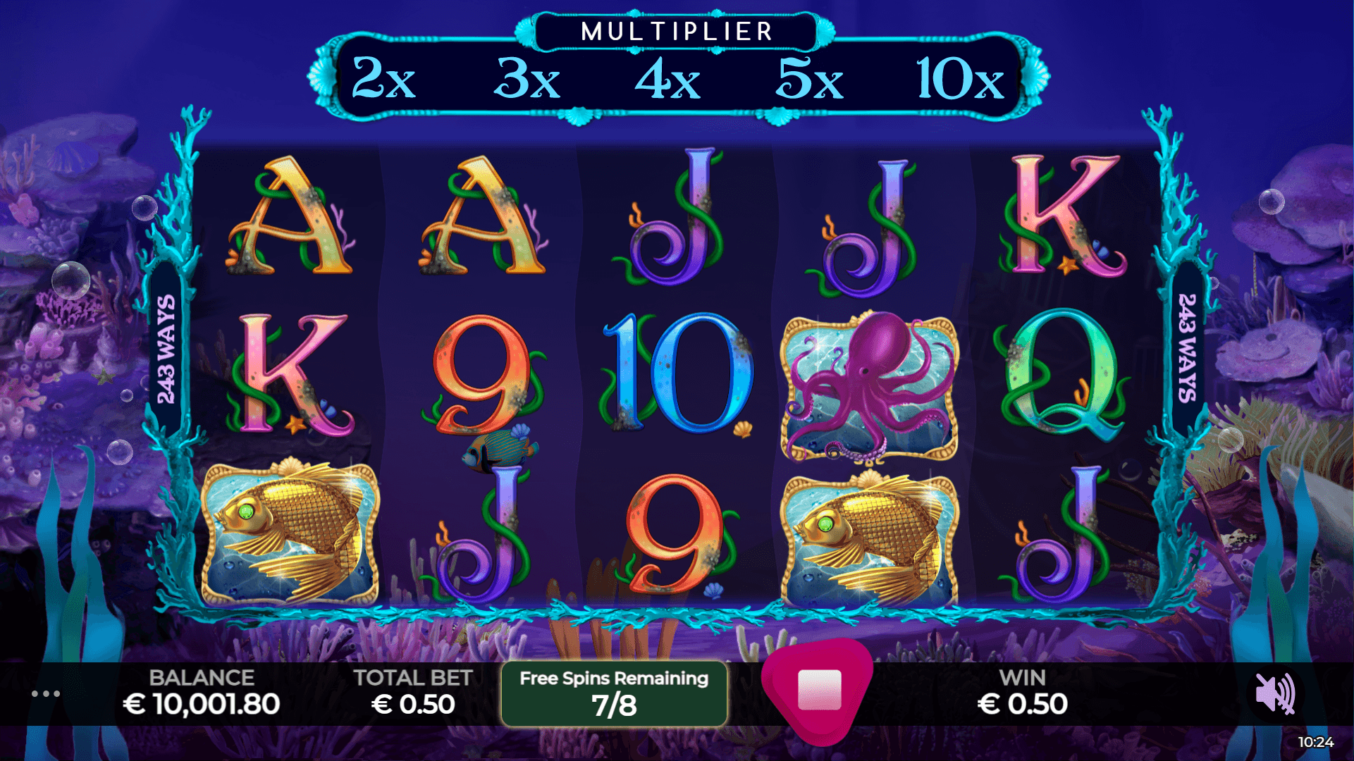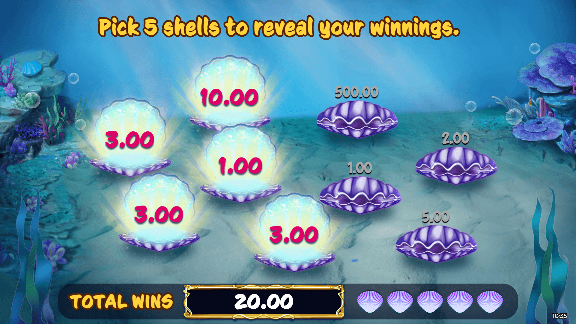 Be amazed by the beauty of the Ocean and all the Riches that are hiding beneath. The Mermaids, Pearls and the Starfish make this a game to enjoy as you try to hit the many features this game has to offer. Whether it be the Multiplier, Pick and Collect the Pearl Bonus round or the Free Spins, you will not want to come to Shore with this game.