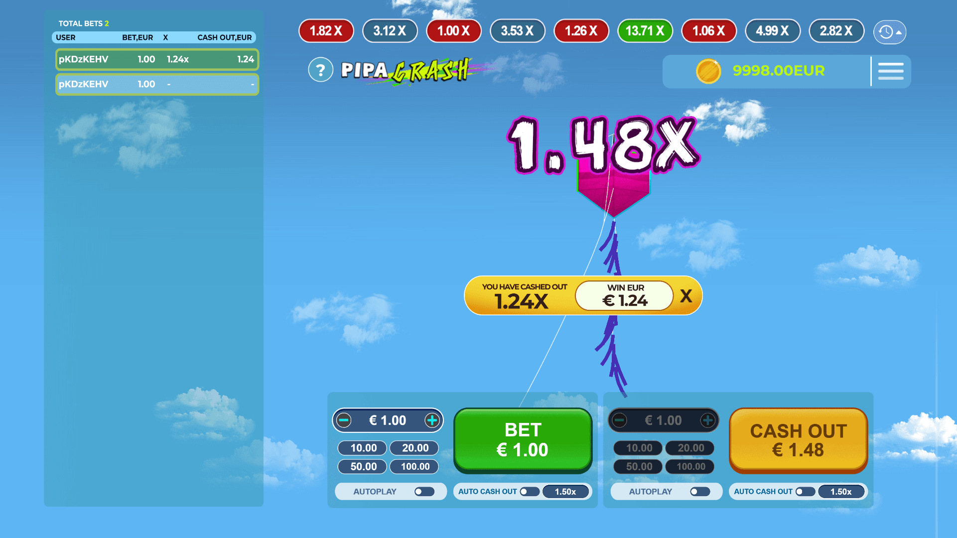 Brace yourselves for an epic adventure in the skies! Our all-new crash game is about to take flight, fusing the timeless thrill of kite flying with the pulse-pounding excitement of gaming. Get ready to soar to new heights with features like autoplay, auto cash out, and multiple bets! It's not just a game; it's a high-flying experience that'll keep you on the edge of your seat.