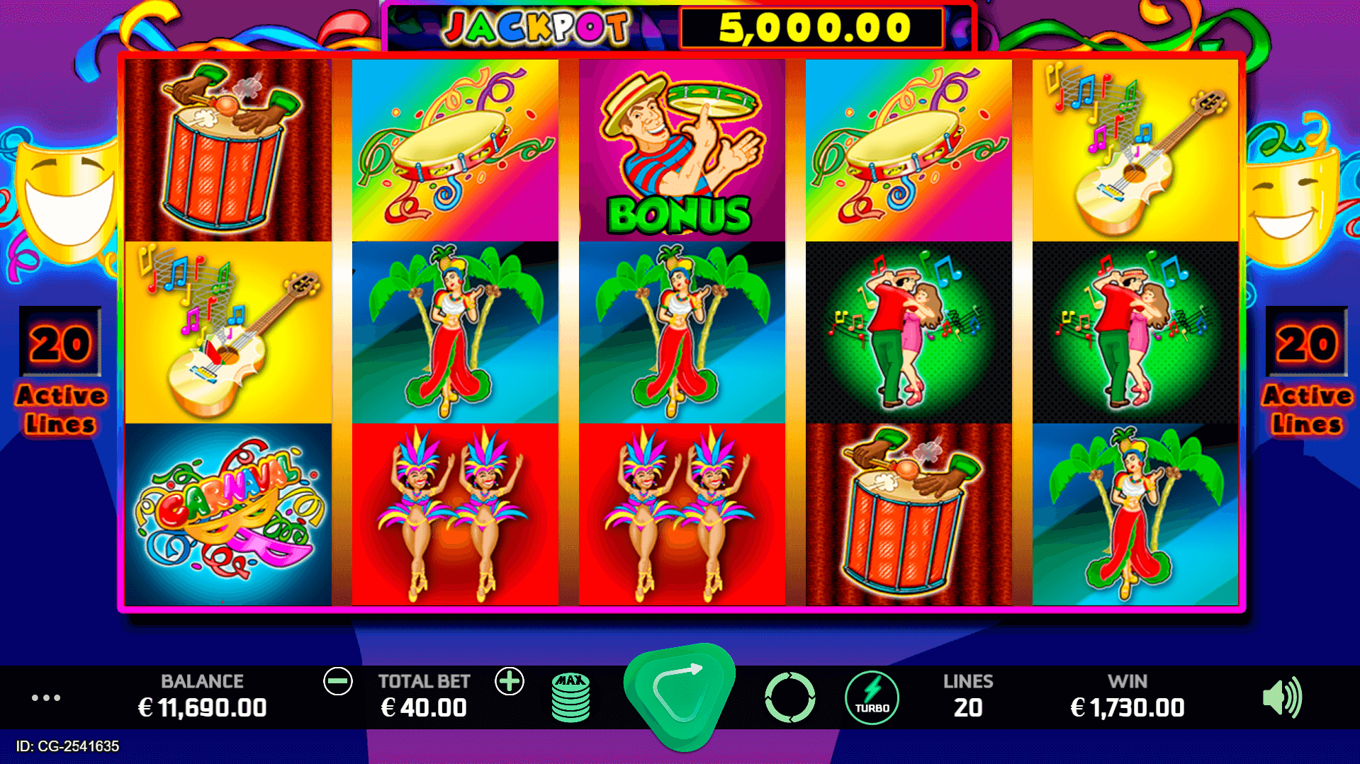 Tambourine Bonus: Collect the prize for the best tambourine; if luck is on your side, go to the mask bonus, on which you have to choose the best mask to reveal your prize!