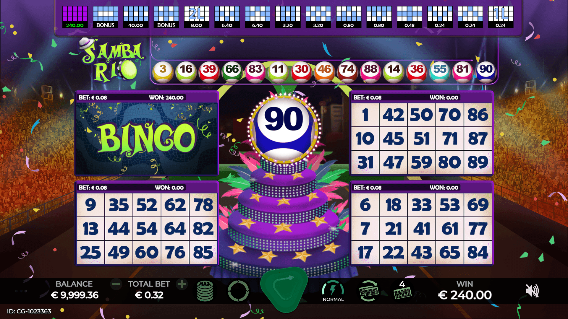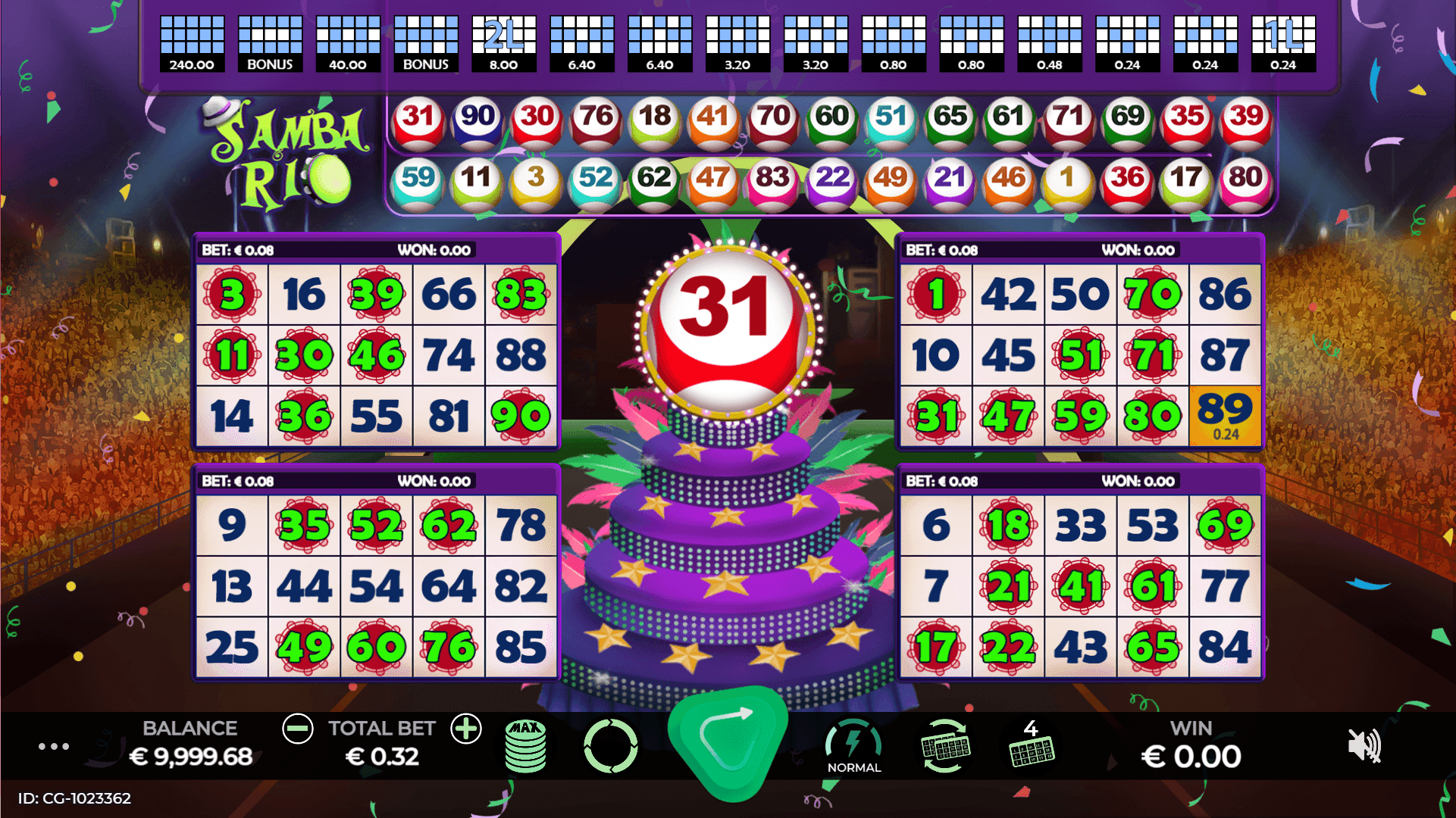 This is one Bingo game not to be missed. Feel the adrenalin as your numbers fall into place one after another in Samba Rio. The excitement and fun of the Brazil Carnival is waiting for you at Samba Rio. All who want to come to Brazil without leaving their homes will have non stop fun with this super fast paced game offering 2 Bonus games and a Jackpot. Don't miss out on dancing Samba girls, big bonus wheels and the mystery of the Masquerade.