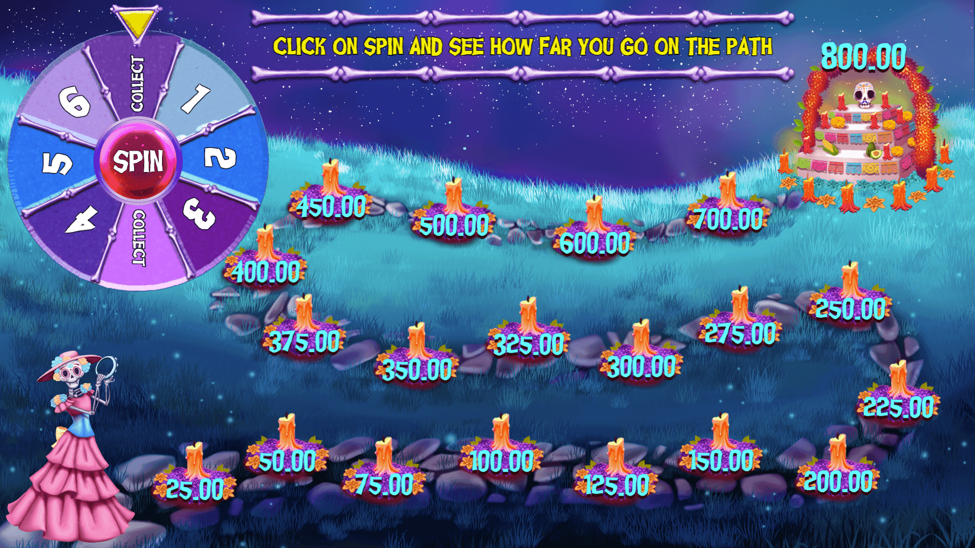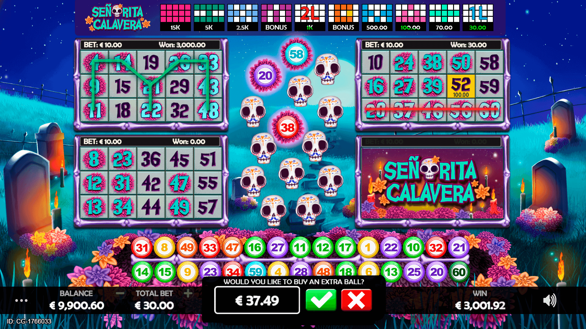 Celebrate life and protect yourself from evil spirits with the help of Señorita Cavalera in this colorful bingo game! Go through the path of the ornamented altar in the bonus game to increase your wins and find the extra balls concealed behind the mexican skulls. Follow "la dama de la muerte" in this journey so you won't miss the chance to win some cash!